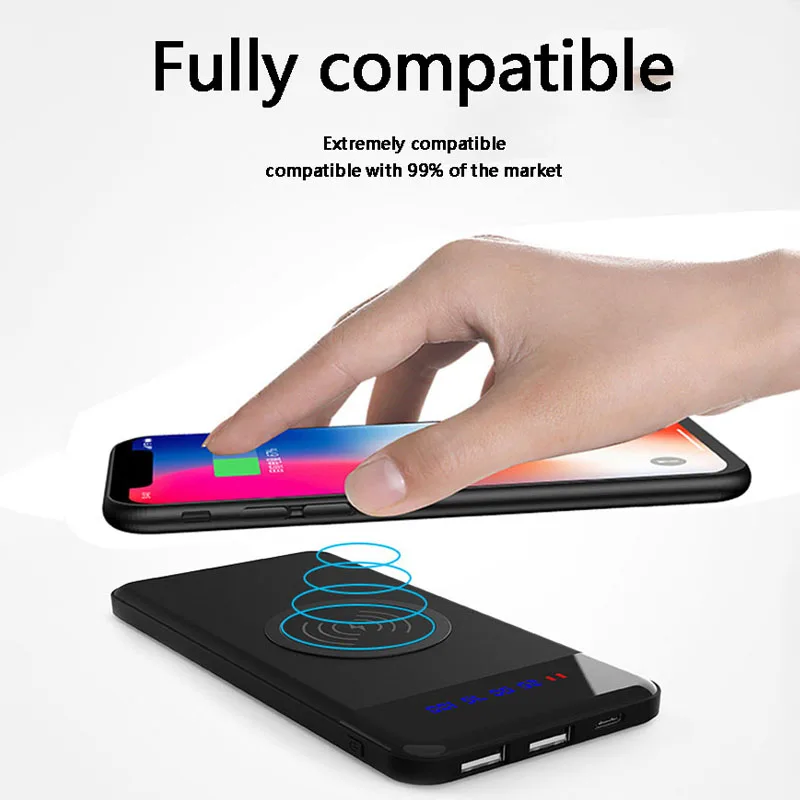 Wireless charging Power Bank 10000 Mah Ultra thin Portable battery power bank Polymer For iPhone ...