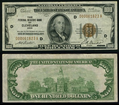 1929 Small Size $100 Federal Reserve Bank Note, Cleveland OH | eBay