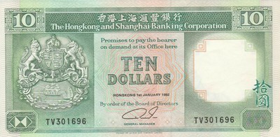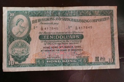 Hong Kong 1980 Ten Dollars Note The HongKong & Shanghai Banking Corporation | eBay