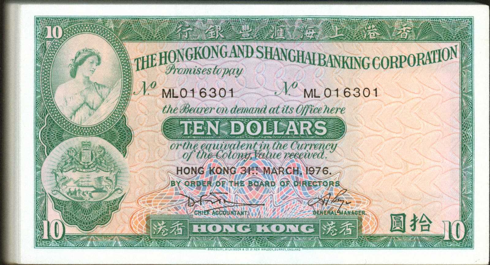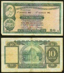 Currency Hong Kong & Shanghai Banking Corporation 1968 Ten Dollars Banknote P182 | eBay
