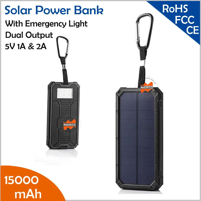 New 15000mAh high capacity Li polymer battery Dual USB output 5V 1A & 2A Solar Power Bank with ...