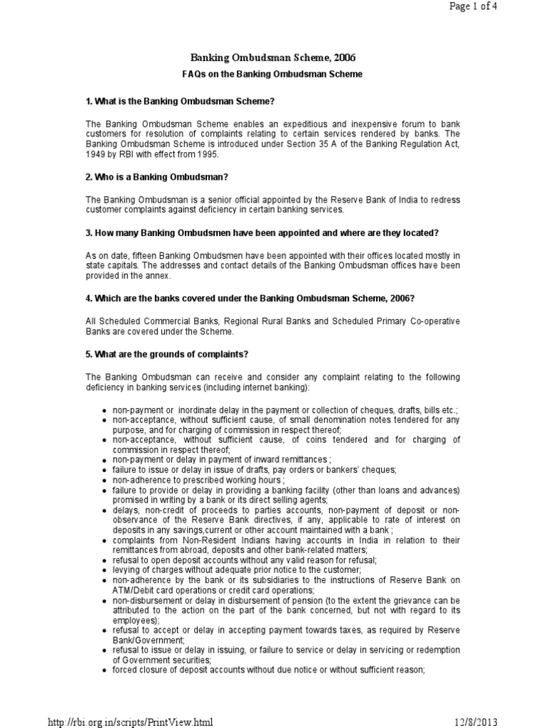 Detailed study on RBI’s Banking Ombudsman Scheme, 2006 - Enterslice
