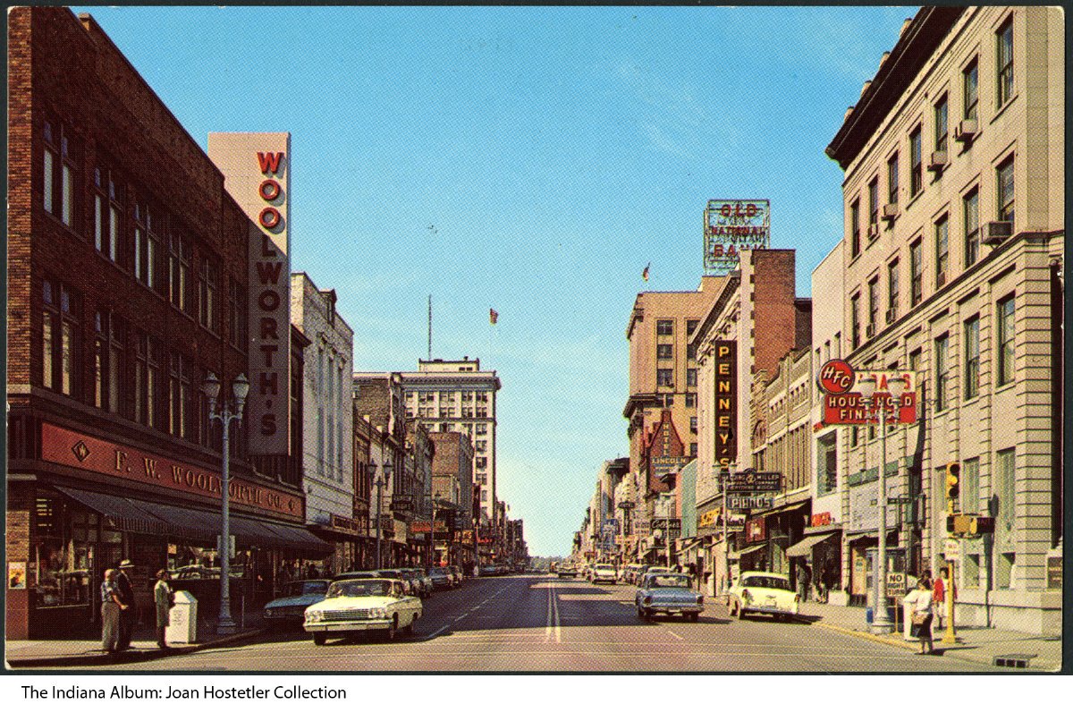 Businesses on Main Street, Evansville, Indiana, circa 1960 - This postcard looks southwest on ...