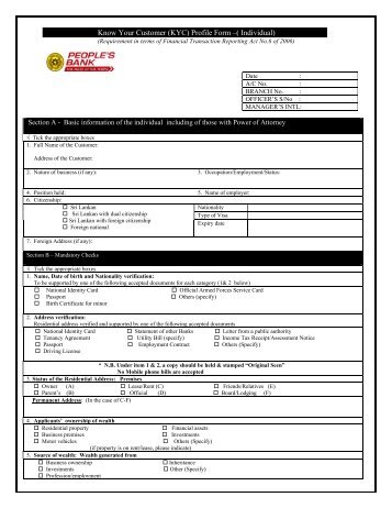 KNOW YOUR CUSTOMER (KYC) PROFILE FORM ... - Peoples Bank