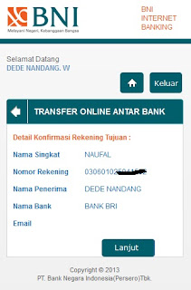 Cara Transaksi (transfer) Online di BNI Internet Banking
