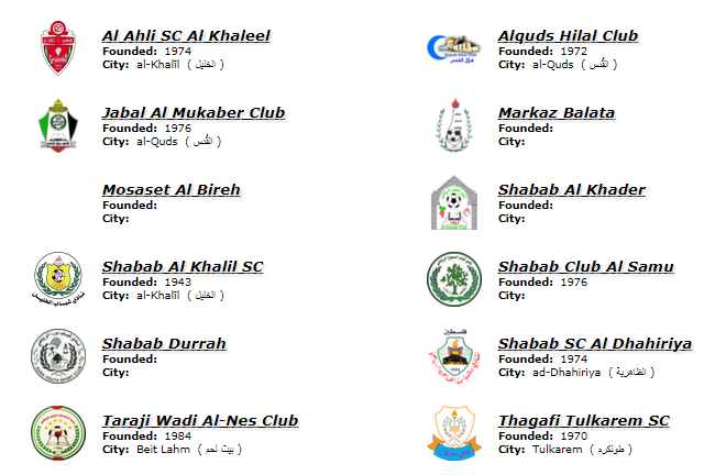 Palestine League - Palestine: Ahli Al-Khalil, Hilal Al Quds, Taraji Wade AL Nees, Shabab Alsamu, Shabab Al.