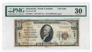 Fr1801-1 1929 Ty.1 First National Bank of Albemarle, NC $10 Note Ch#11091 PMG 30 | eBay
