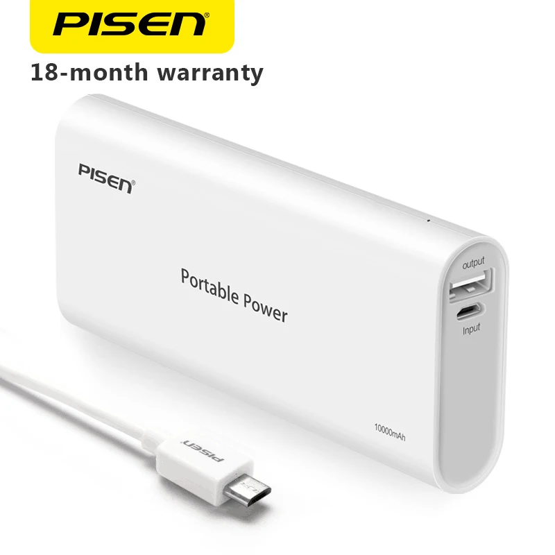 PISEN 10000mAh Power Bank with LED Indicator 18650 Portable External Battery USB Powerbank ...