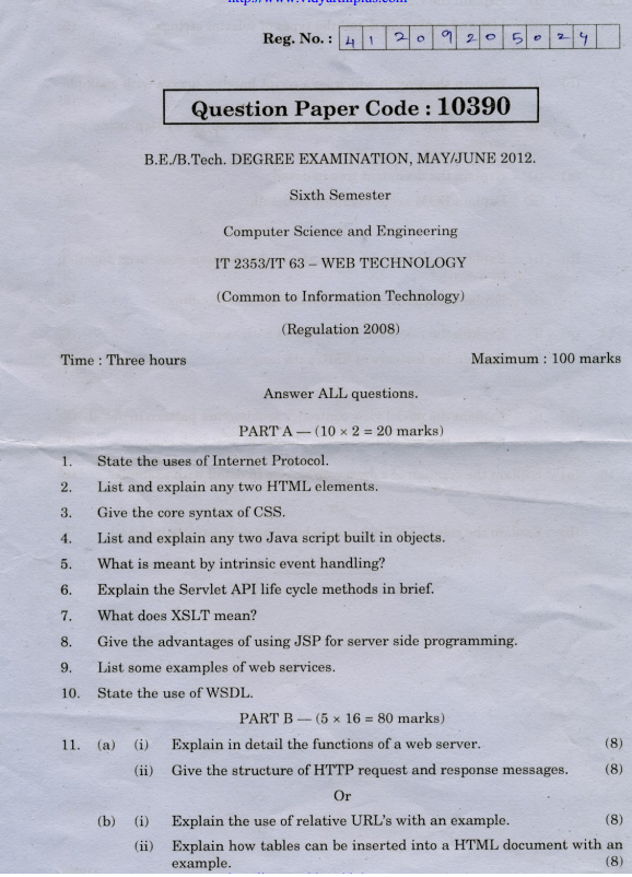 IT2353 WEB TECHNOLOGY QUESTION BANK PDF